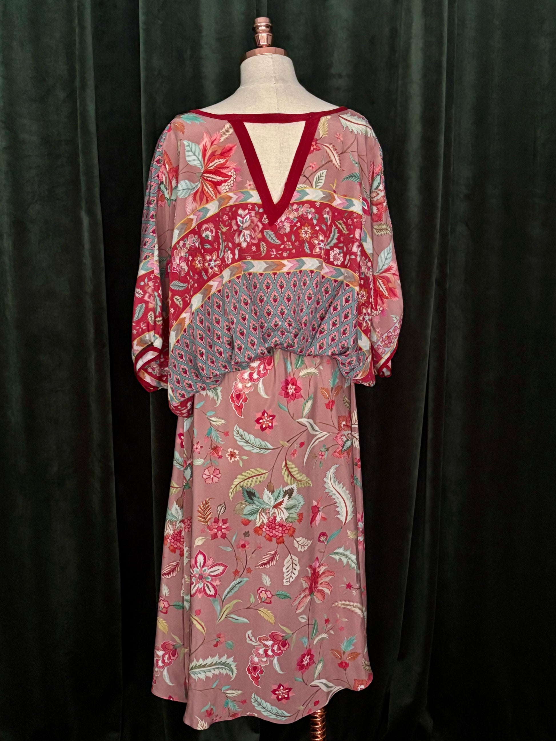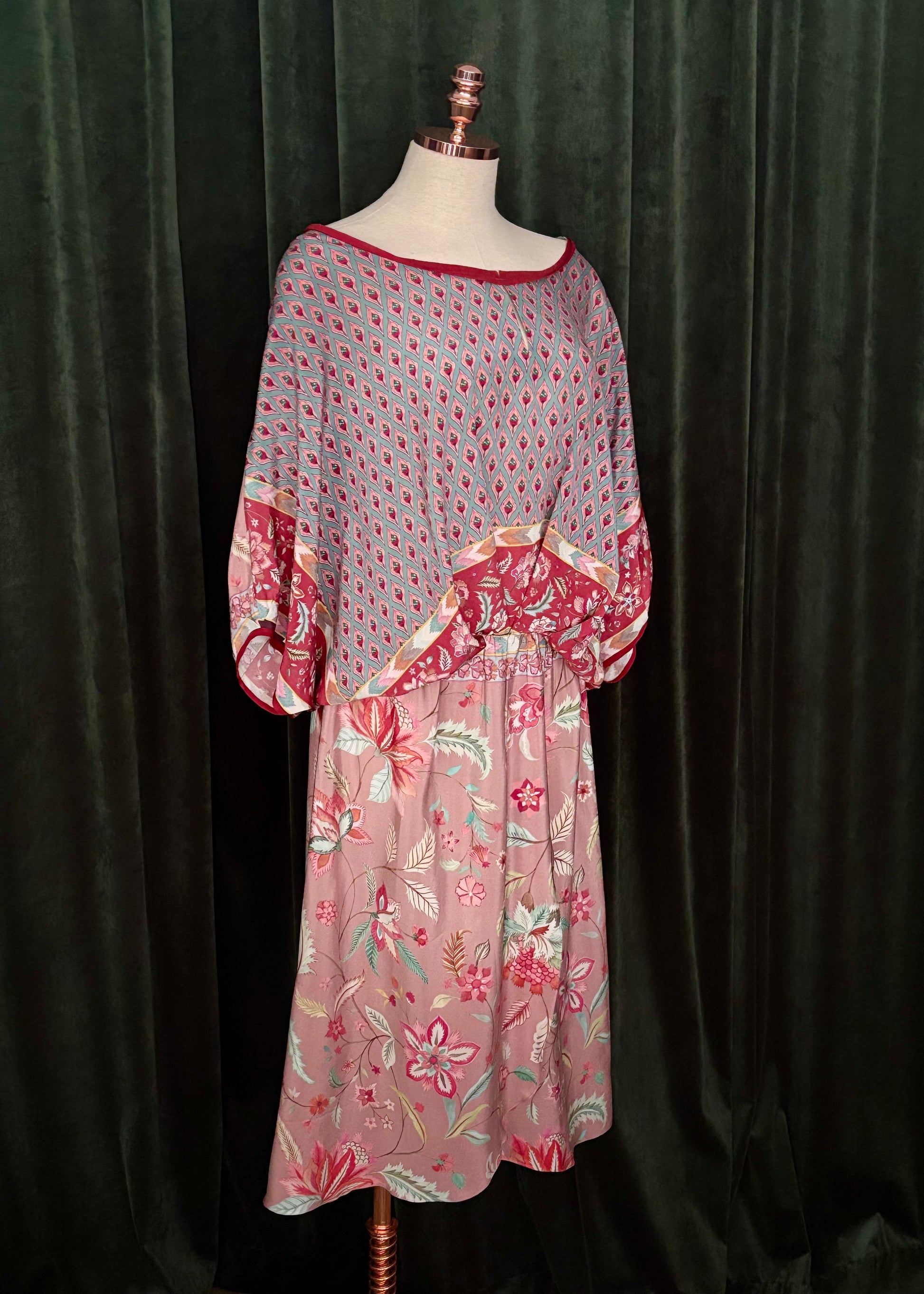 Criado a partir do meu acervo pessoal de saris de seda pura — cada peça é única, tecida com história e transformada manualmente em um novo formato. As estampas florais e bordas geométricas, originalmente desenhadas para saris indianos, ganham nova vida em um corte leve e fluido que valoriza o movimento e o brilho natural da seda. Um trabalho de ressignificação que une tradição, raridade e arte têxtil em uma criação exclusiva, feita para quem reconhece o valor do que é realmente singular.