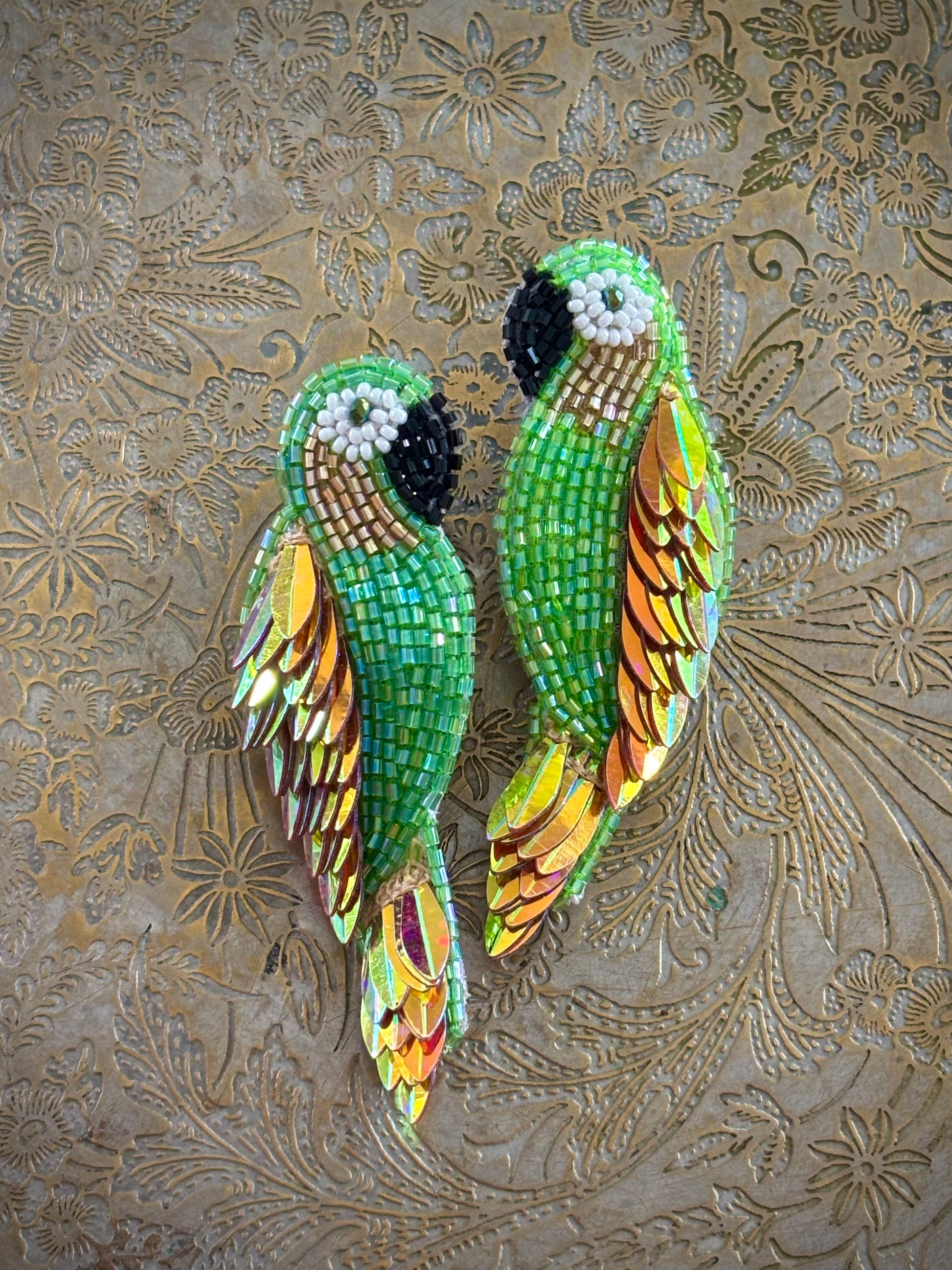 Inspirado nas coloridas Araras tropicais , os Brincos ARA são feito com uma combinação de micro miçangas e sequins alongados que imita as penas longas e brilhantes da cauda deste pássaro tão exótico.