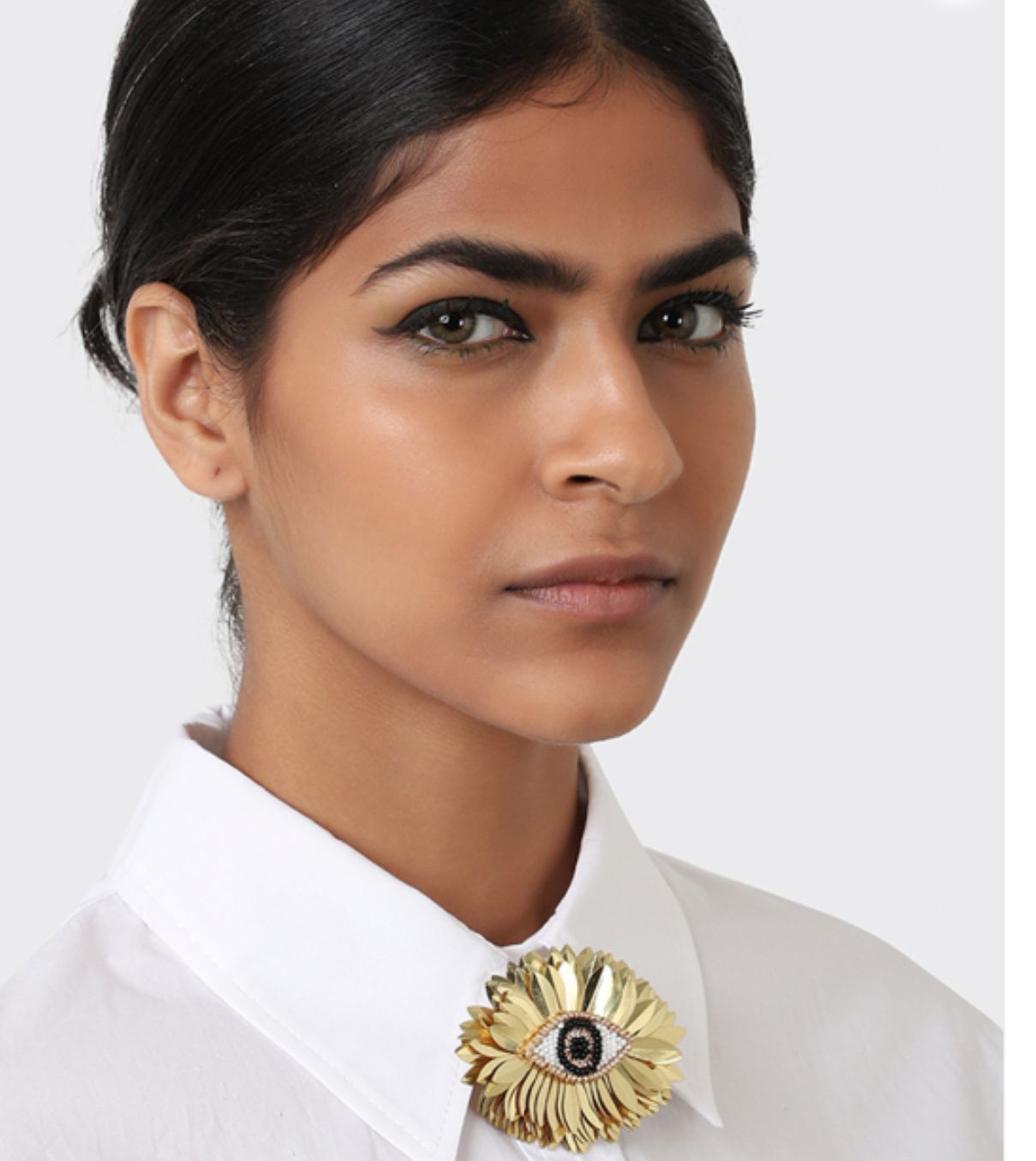 Broche bordado à mão no atelier da designer francesa Olivia Dar. Inspirado nos amuletos que afastam mal olhado da Grécia, o broche Olho de Tinos é uma peça statement que adiciona brilho `uma jaqueta, cashmere pullover ou uma simples camisa. Bordado com pequenos sequins, pailletés e pequeníssimos beads.