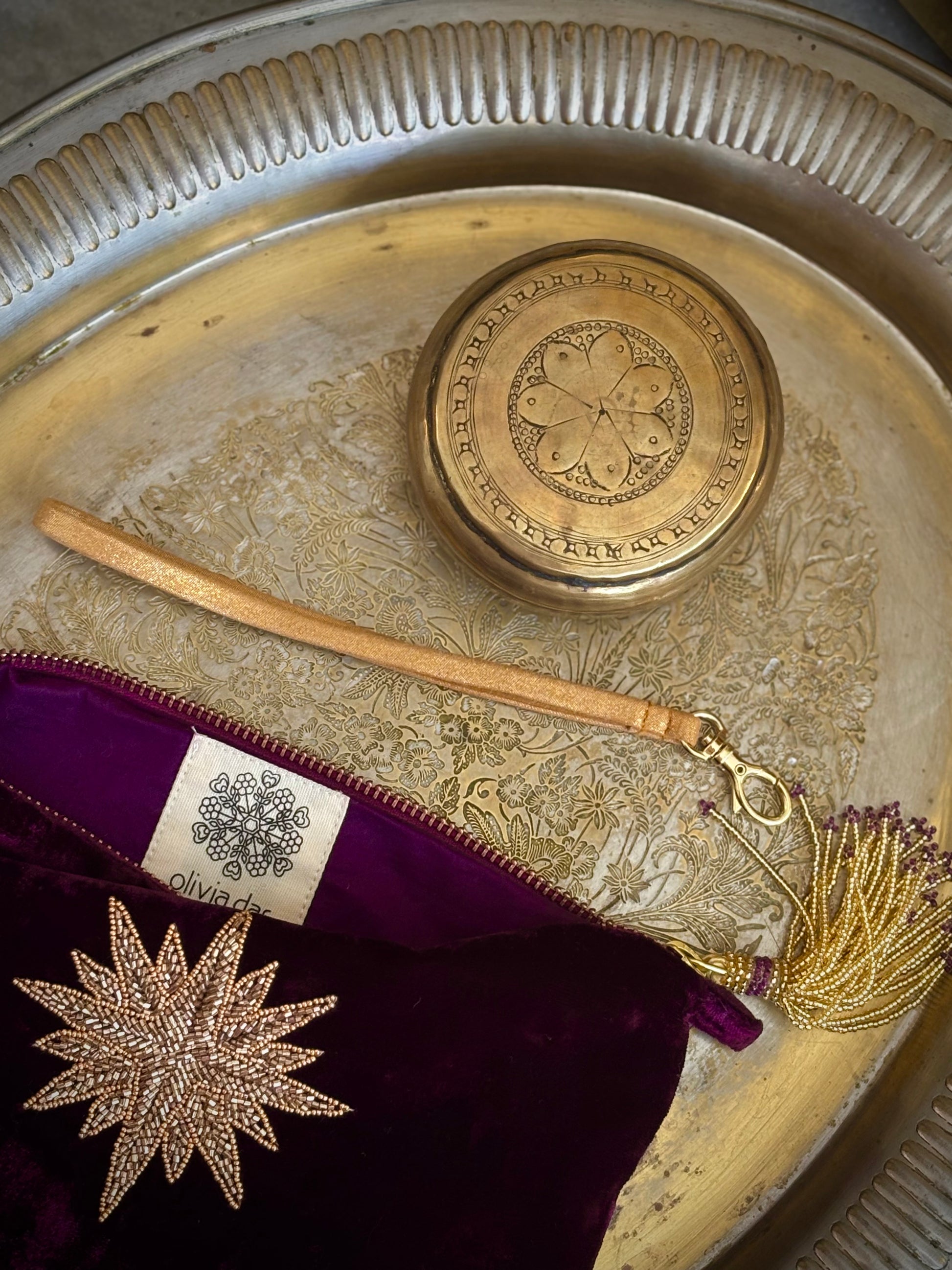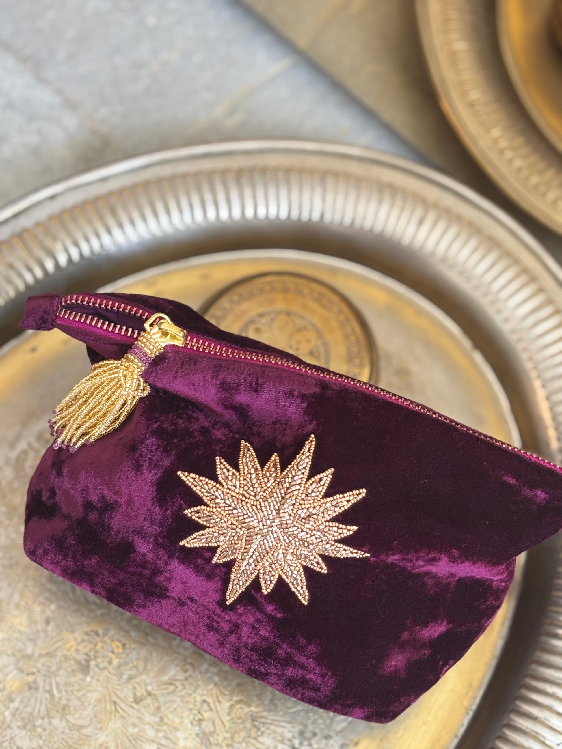 Carteira de veludo bordada á mão com pequenos sequins e canutilhos.