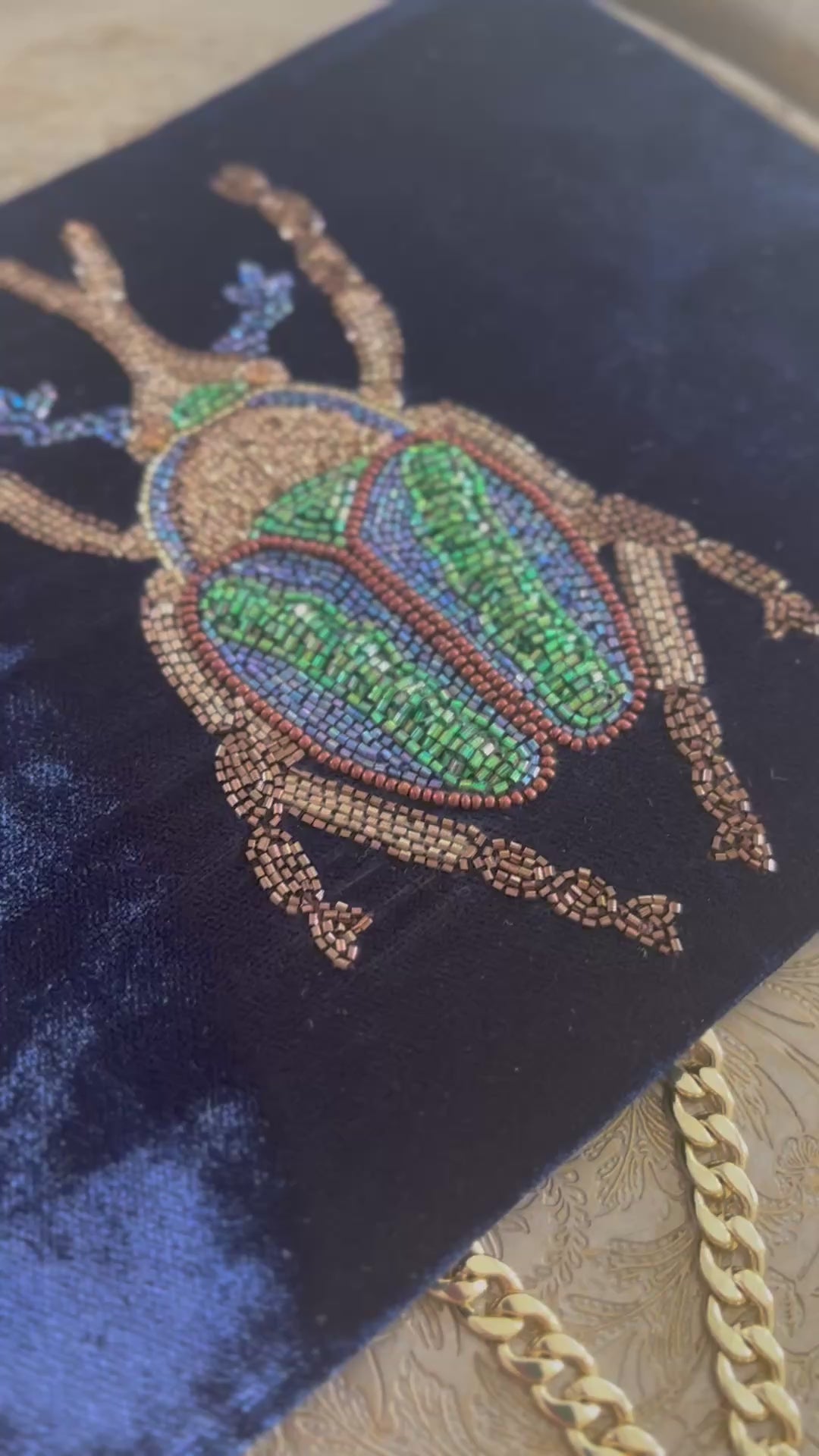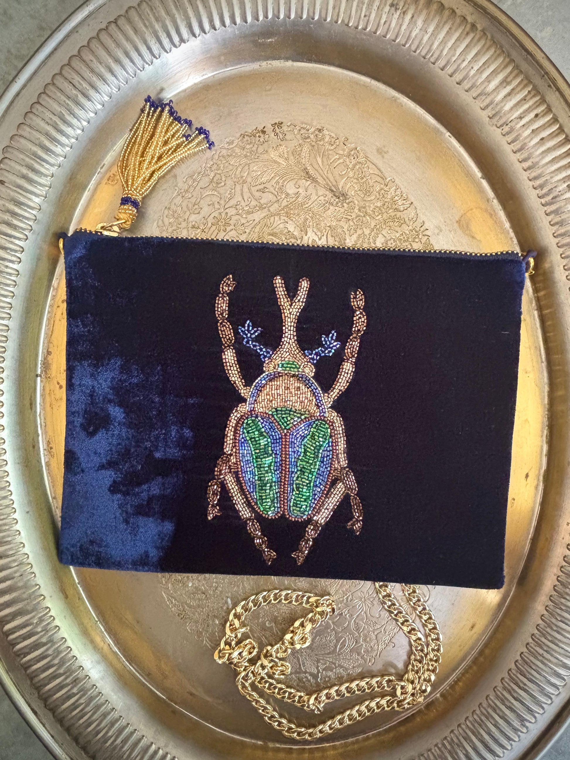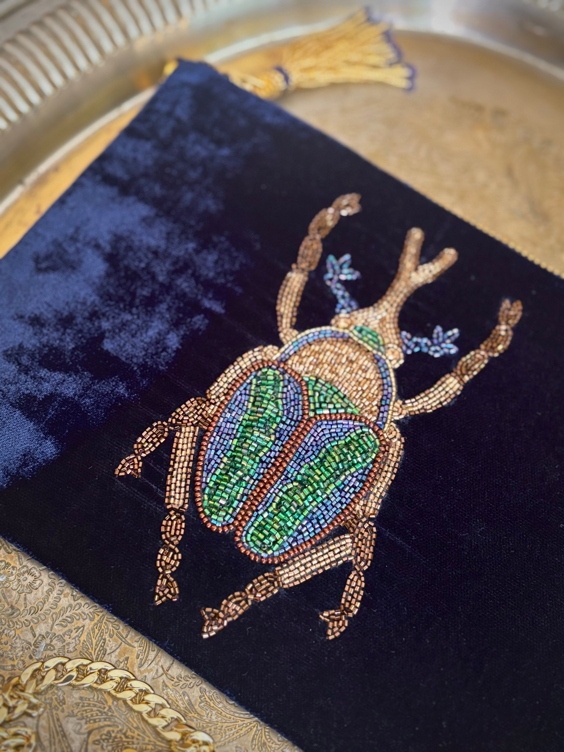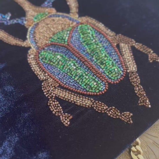 Carteira de veludo bordada á mão com pequenos sequins e canutilhos.
