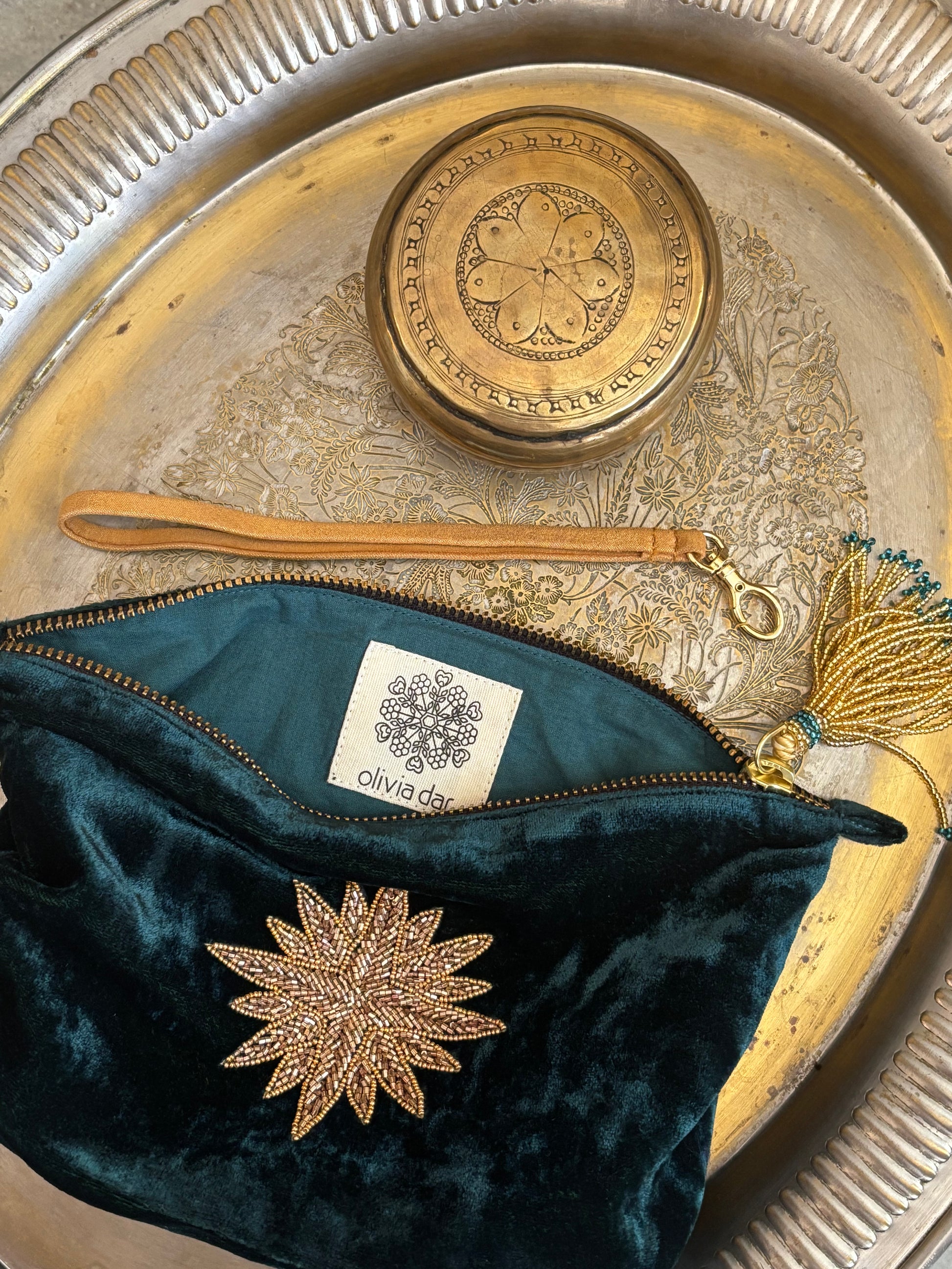 Carteira de veludo bordada á mão com pequenos sequins e canutilhos.