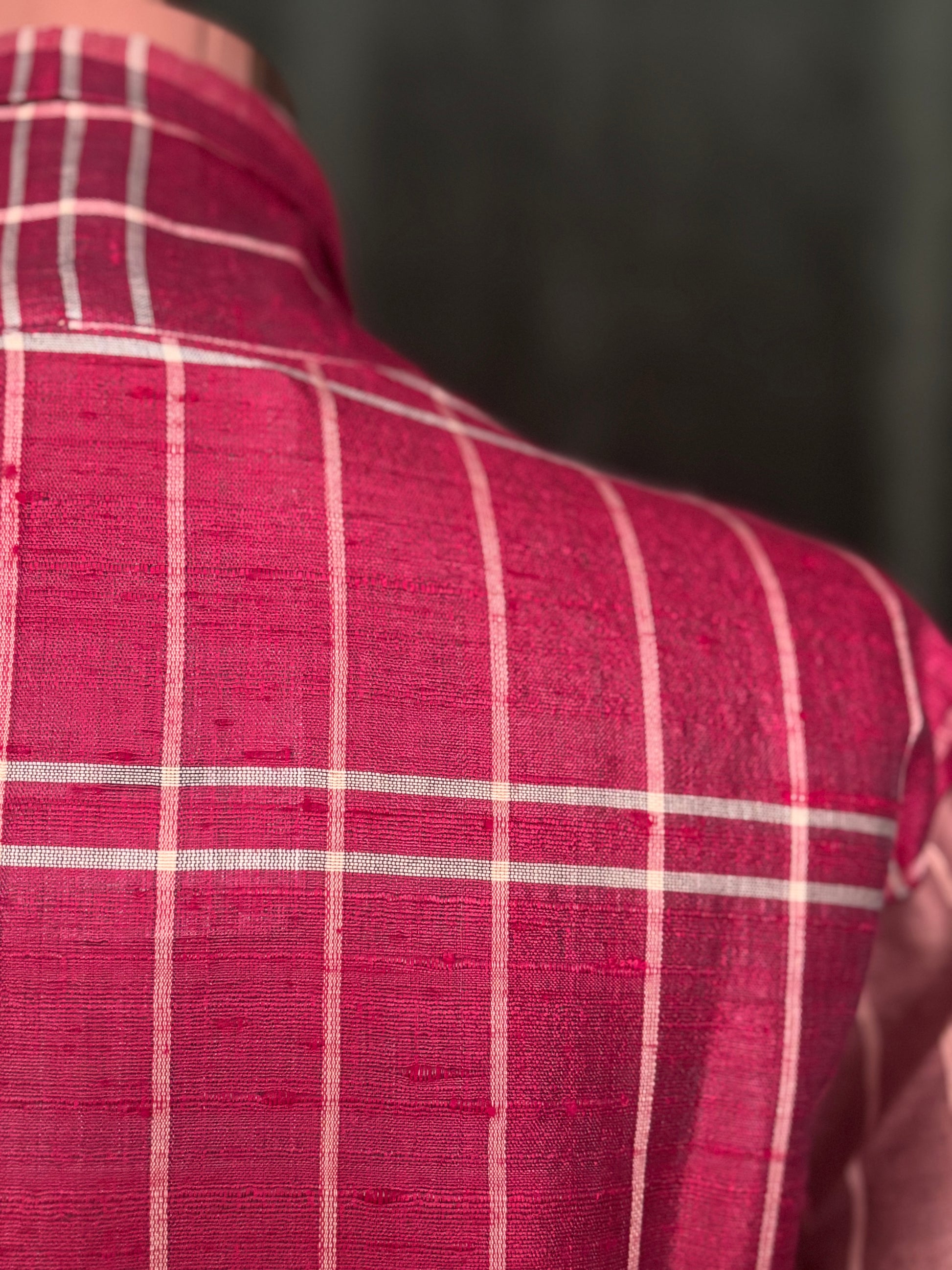 Criado a partir do meu acervo pessoal de saris de seda pura — cada peça é única, tecida com história e transformada manualmente em um novo formato. As estampas geométricas, originalmente desenhadas para saris indianos, ganham nova vida em um corte leve e fluido que valoriza o movimento e o brilho natural da seda. Um trabalho de ressignificação que une tradição, raridade e arte têxtil em uma criação exclusiva, feita para quem reconhece o valor do que é realmente singular.