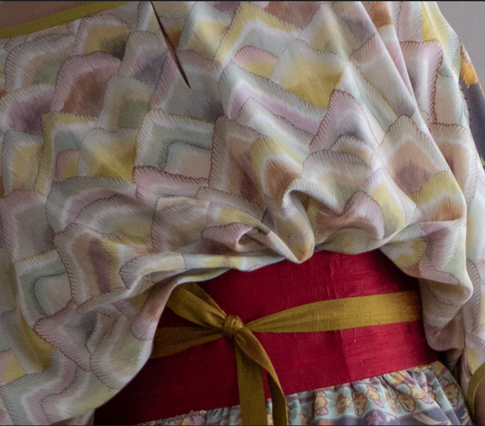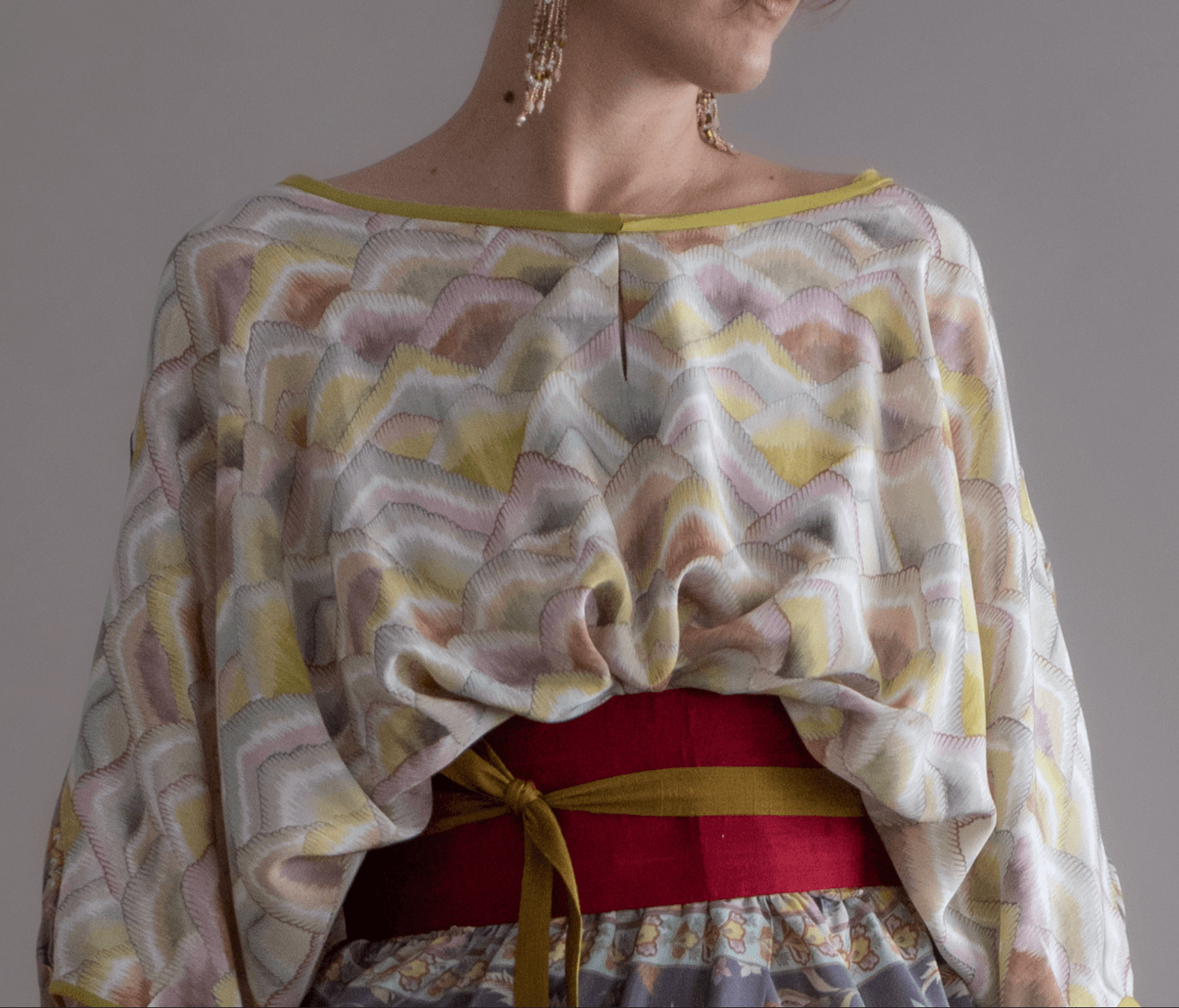 Criado a partir do meu acervo pessoal de saris de seda pura — cada peça é única, tecida com história e transformada manualmente em um novo formato. As estampas florais e bordas geométricas, originalmente desenhadas para saris indianos, ganham nova vida em um corte leve e fluido que valoriza o movimento e o brilho natural da seda. Um trabalho de ressignificação que une tradição, raridade e arte têxtil em uma criação exclusiva, feita para quem reconhece o valor do que é realmente singular.